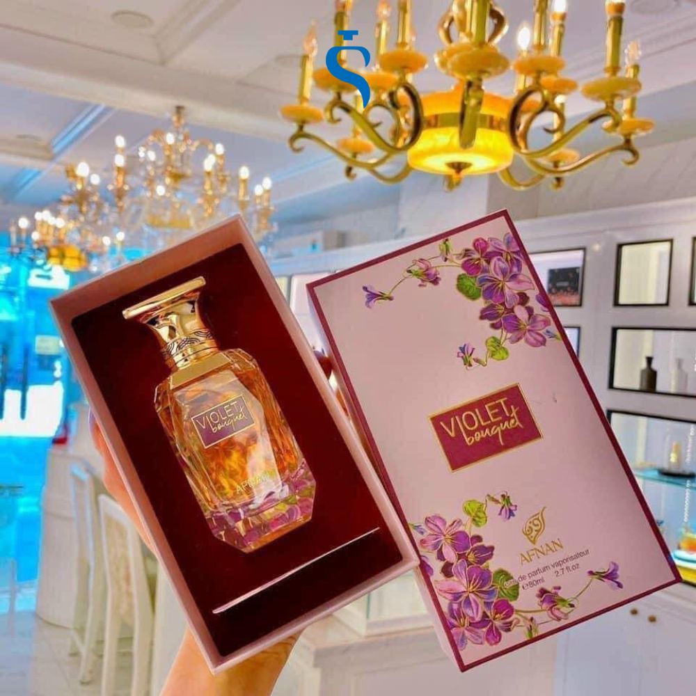 Nước Hoa Nữ Afnan Violet Bouquet- Afnan Violet Bouquet, là nước hoa mang sự bùng nổ của nốt hoa tím đầm thắm và cuốn hút xen lẫn làn hương ngọt ngào từ hổ phách, kẹo trái cây.
