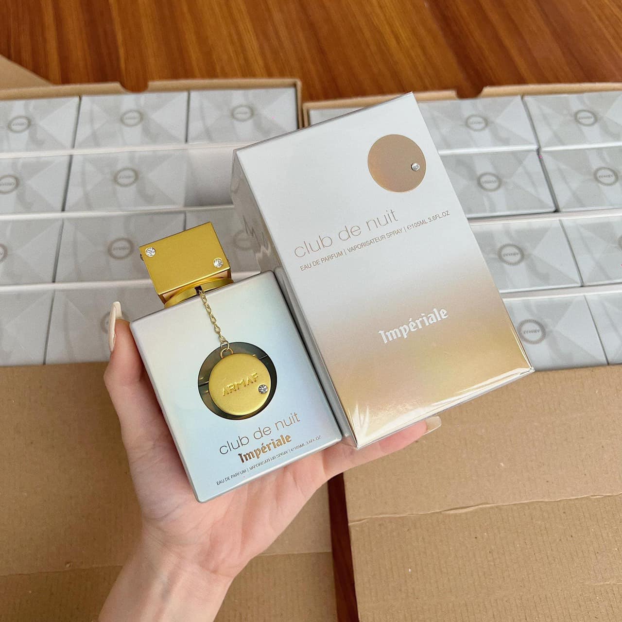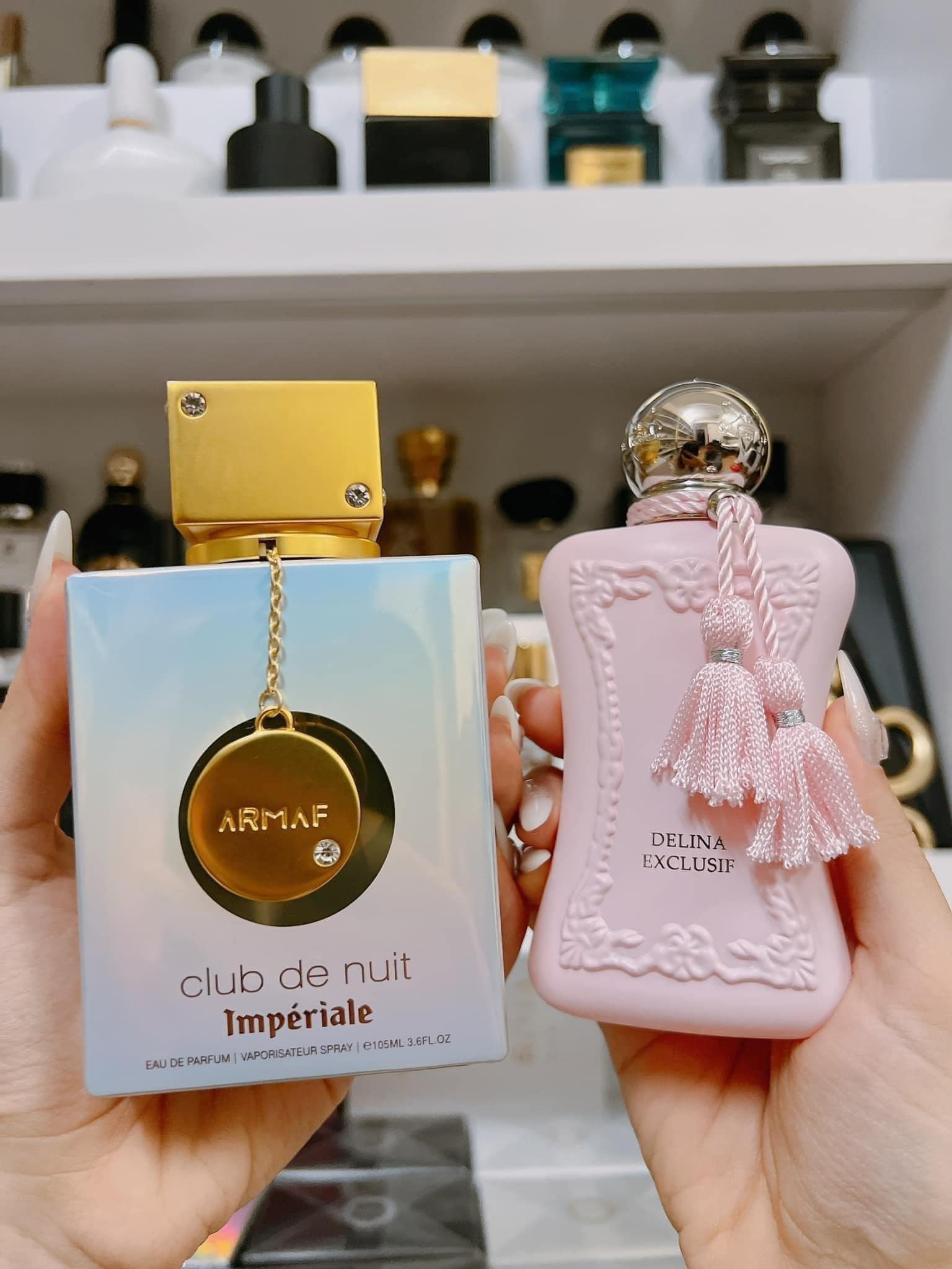 NướC Hoa Nữ Armaf Club De Nuit Imperiale-  hiện trong một chai nước hoa màu trắng ngọc trai, được tạo nên nhờ sự kết hợp mùi hương của cam quýt, gia vị, hoa, vani và gỗ. Armaf Club De Nuit Imperiale hiện đang được giới chuyên môn đánh giá là chị em song sinh với Parfums de Marly Delina Exclusif với mùi hương giống đến 90%. Khả năng bám tỏa của chai nước hoa này cũng nổi trội hơn hẳn so với Delina Exclusif.