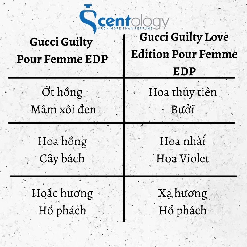 Sau khi tổng hợp hết tất cả các đặc điểm hai chai nước hoa Gucci Guilty Pour Femme EDP và Gucci Guilty Love Edition Pour Femme EDP, Nhà SCENTO rút ra một vài kết luận như sau: