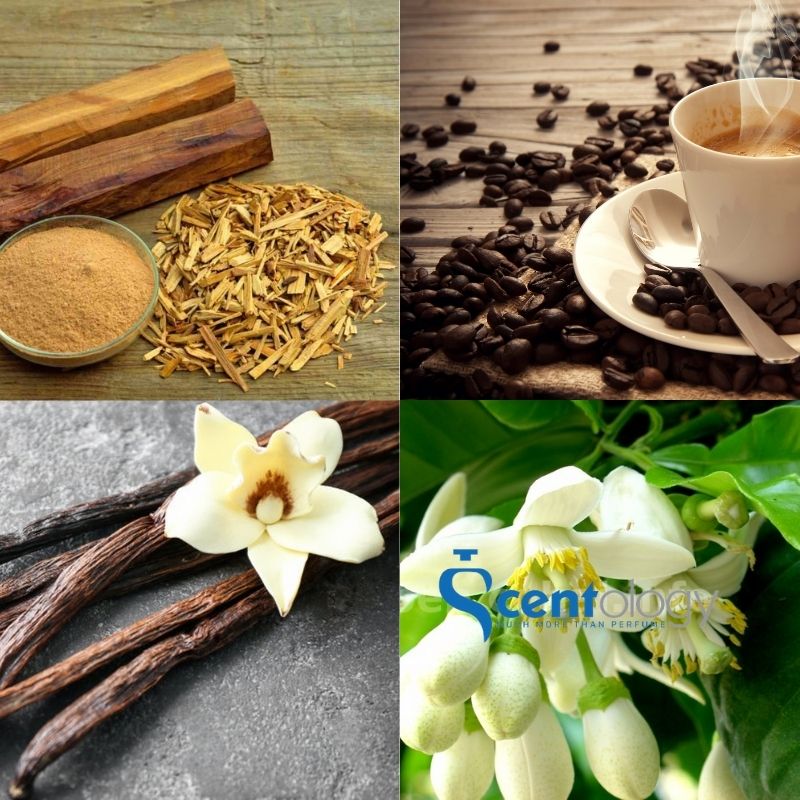 Hương đầu là sự thanh thoát trầm ấm của Gạo, Tiêu Bourbon, Tiểu hồi hương dần dà chuyển sang sự cay nồng ấm áp nhẹ của Cà phê và Ngò thơm. Cuối cùng kết thúc với sự ngọt ngào của Vani và Caramel thơm ngát.