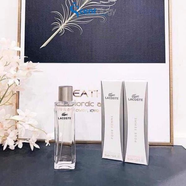 NướC Hoa Nữ Lacoste Pour Femme- Lacoste Pour Femme được giới thiệu vào năm 2003 - một năm sau khi phiên bản Lacoste pour Homme ra đời. Phiên bản Lacoste dành riêng cho phái đẹp được sáng tạo bởi chuyên gia nước hoa Olivier Creps. Cũng như các sản phẩm của Lacoste, Lacoste Pour Femme là hương thơm tự nhiên dễ chịu, vô cùng thanh lịch và tràn đầy cá tính thể thao. Thông điệp của mùi hương gửi gắm qua hình ảnh Catherine Hurley nhón chân lả lướt trên mặt bàn biểu tượng cho vẻ đẹp thanh thản, tự do, không trói buộc của người phụ nữ mang trên mình hương thơm này.